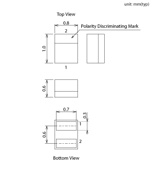 PinoutSpecifications Absolute maximum ratingsVRRM [V]30IO [A]0.5IFSM [A]5 Electrical characteristicsVF(1) max [V]0.36IF [A]0.1VF(2) max [V]0.56IF [A]0.5IR max [µA]100VR [V]15trr max [ns]10IF [A]0.1IR [A]0.1Rthj-a typ [°C/W]70When mounted in Cu-foiled area of 0.72mm²×0.03m...