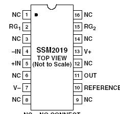The SSM2019 is a latest generation audio preamplifier, combining SSM preamplifier design expertise with advanced processing. The result is excellent audio performance from a monolithic device, requiring only one external gain set resistor or potentiometer. The SSM2019 is further enhanced by its unity gain stability.
