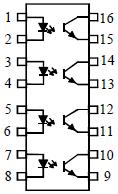 The TLP521-4 serie of optically coupled isolators consist of infrared light emitting diodes and NPN silicon photo transistors in space efficient dual in line plastic packages.It is designed for (1)computer terminals; (2)industrial systems controllers; (3)measuring instruments; (4)signal transmission between systems of different potentials and impedances.