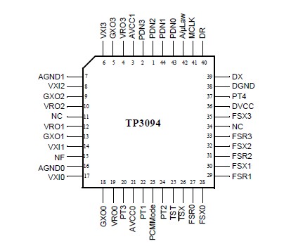 The TP3094 includes a flexible PCM digital interface, which allows the device to be connected to PCM busses of different formats. It can also be connected with other TP3094 devices in a cascade fashion, for a system with up to 128 POTS interfaces (when a 2.048MHz PCM bus is used).