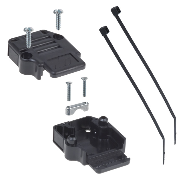 Description: BACKSHELL DB9 90DEG MET PLASTIC