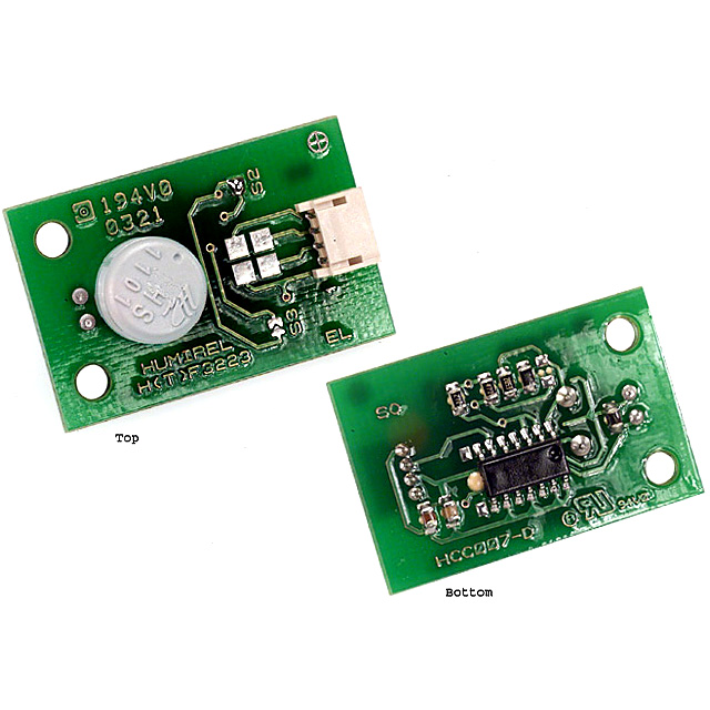 MAIN FEATURES ·Size and connector type match existing humidity modules. ·Stable, linear proportional frequency output from 10 to 95% RH. ·Calibrated within +/- 5% RH @ 55% RH. ·Optional 10 K +/- 3% NTC temperature sensor (HTF 3223) ·Stable characteristics with temperature. ·High reliability and long term stability. HUMIDITY SENSOR SPECIFIC FEATURES ·Instantaneous de-saturation after long periods in saturation phase. ·Fast response time. ·High resistance to chemicals. ·Not affected by water immersion. ·Patented solid polymer structure. TEMPERATURE SENSOR SPECIFIC FEATURES ·High quality thermistor ·Stable ·High sensitivity